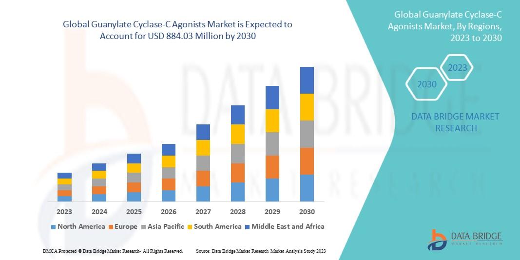 Data Bridge Market Research analyzes that the guanylate cyclase-C agonists market which was USD 576.03 million in 2022, is likely to reach USD 884.03 million by 2030, and is expected to undergo a CAGR of 5.5% during the forecast period.